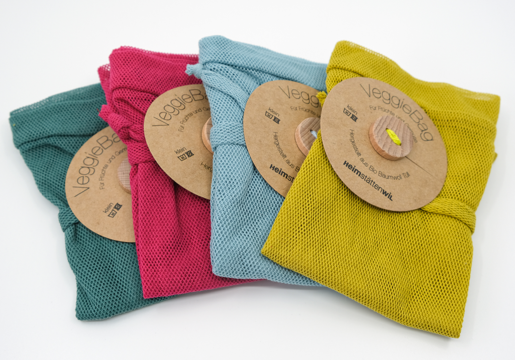 Am Samstag auf den Wochenmarkt oder für den Einkauf im Supermarkt. Die handgemachten Veggie-Bags von den Heimstätten Wil gibt es in vier Farben. Es macht einfach viel mehr Freude mit einem wiederverwendbaren Säckli unterwegs zu sein. Einfach waschbar.