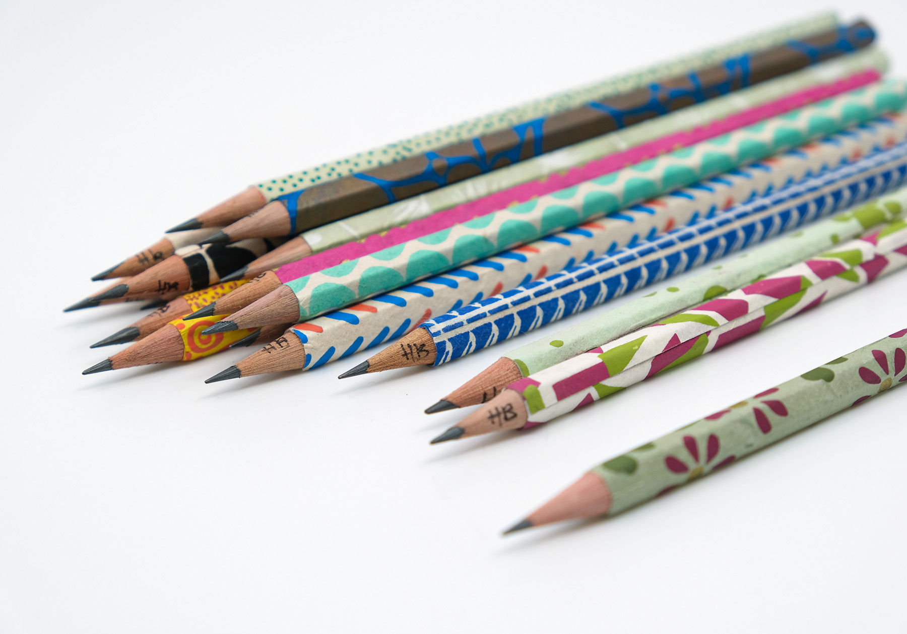 Das Set besteht aus 3 Stück in den beschriebenen Farbtönen mit verschiedenen Sujets. Die Bleistifte werden in der Buchbinderei der Werkstätten Bern, von Hand mit hochwertigem Lokta Papier eingefasst.