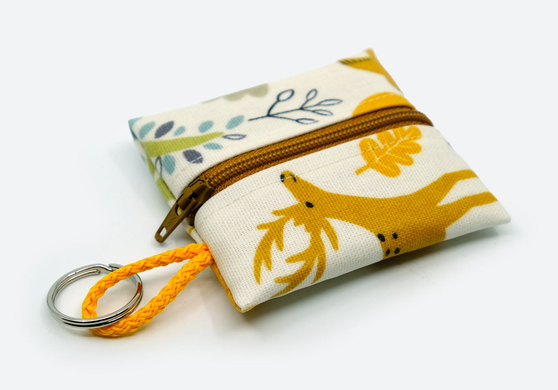 Wachstuch, beschichtete Baumwolle, Reissverschluss, Metallring, Kordel