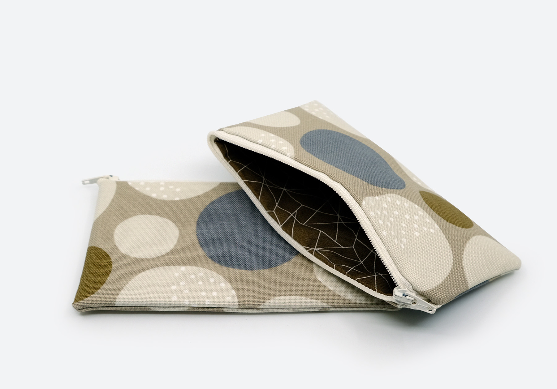 Die flachen Etuis, werden in der Textilwerkstatt von Hand hergestellt. Mit Reissverschluss und Innenfutter. Ein praktisches Accessoire für den Alltag.