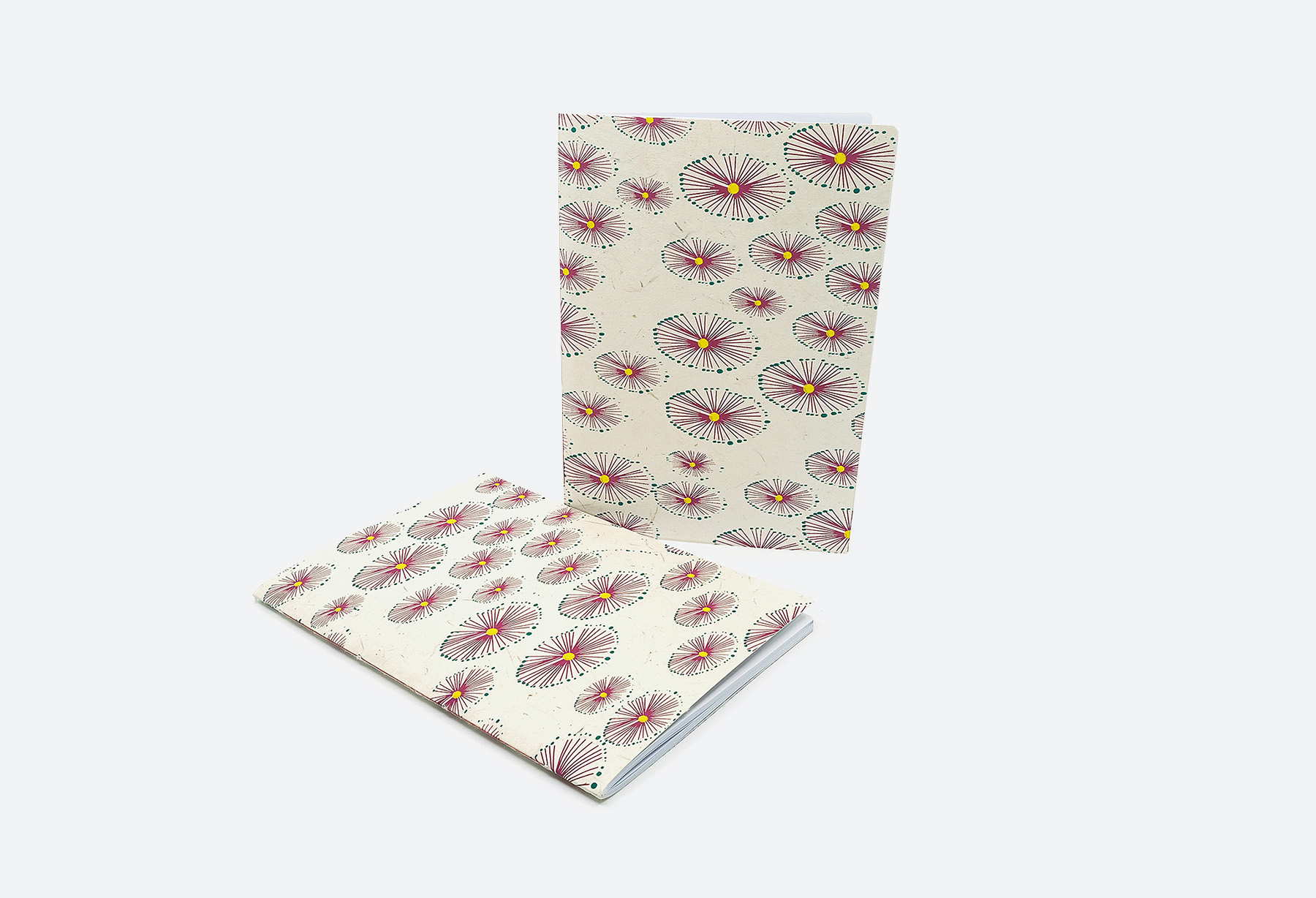 Schreibhefte aus Lokta-Papier mit exklusivem Einband. Ausgewählte Designs zieren die praktischen Hefte der Buchbinderei. Die Hefte werden mit Sorgfalt in unserer Buchbinderei handgemacht.
