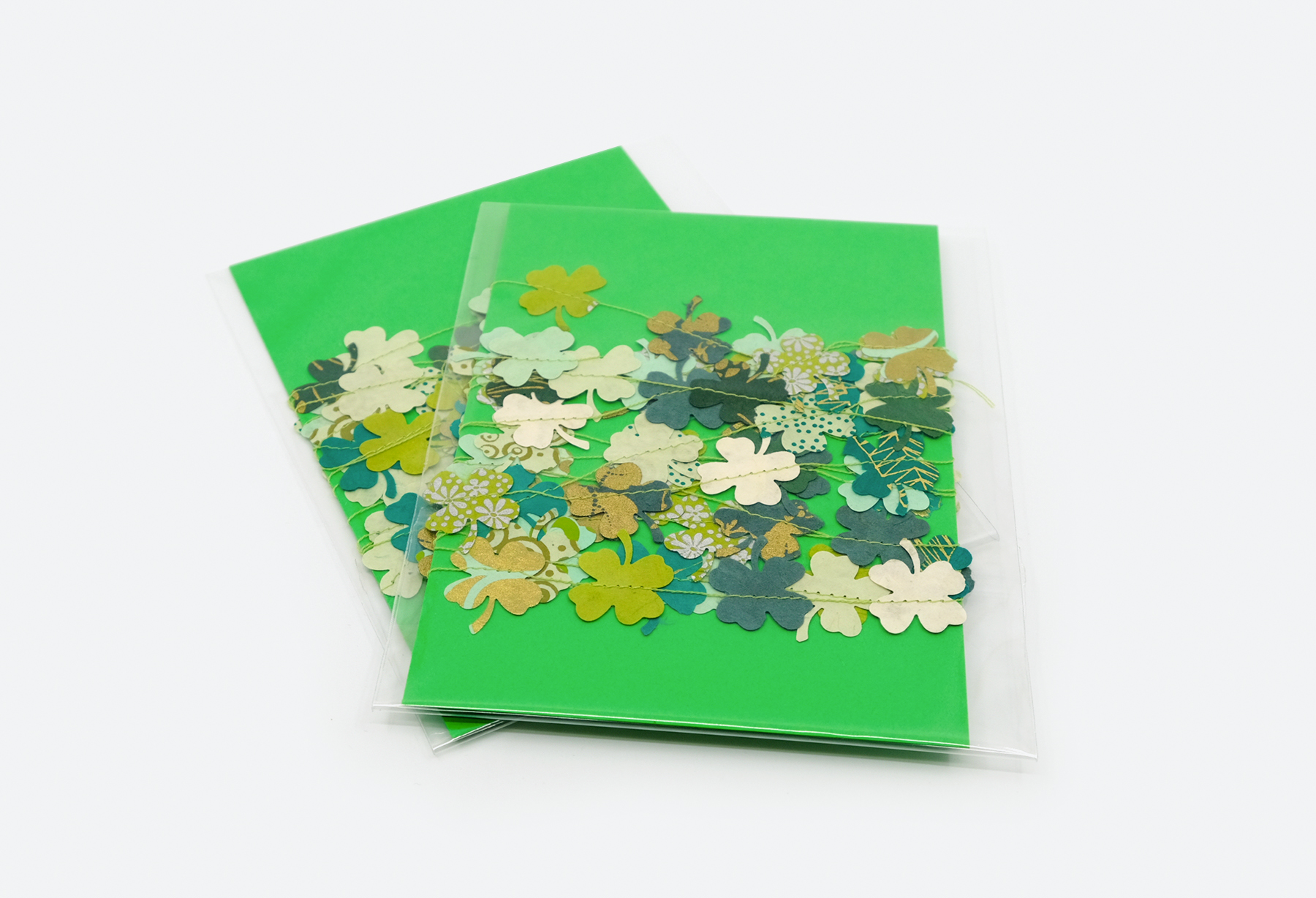 Papierkleeblätter, Garn