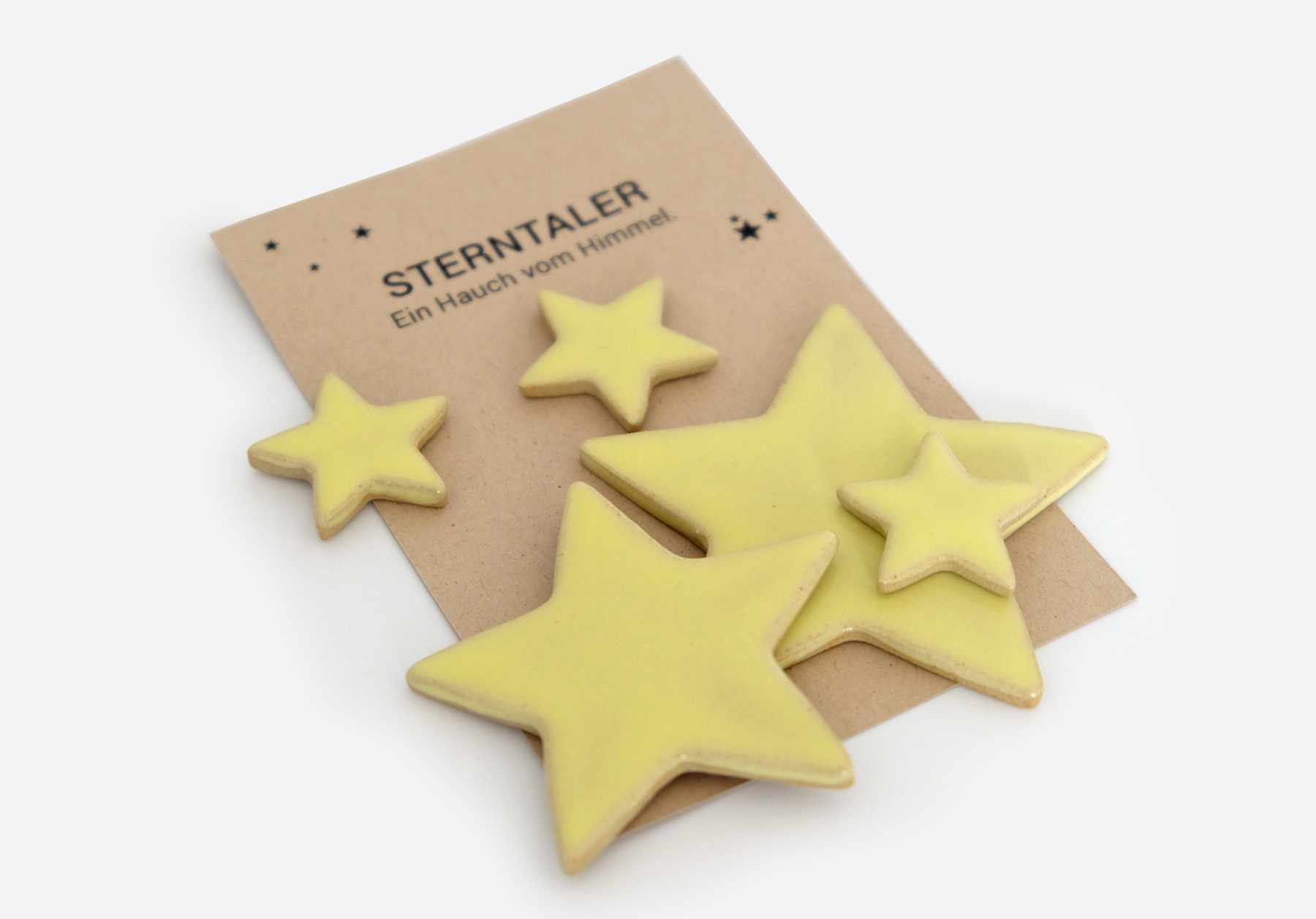 Die handgemachten Sterntaler aus der Keramikwerkstatt sind das perfekte Dekoelement für den Festtags- und Weihnachtstisch. Jedes Säckli beinhaltet 5 Keramiksterne. Die Säckli sind auch ein schönes Mitbringsel für die Feiertagseinladungen.