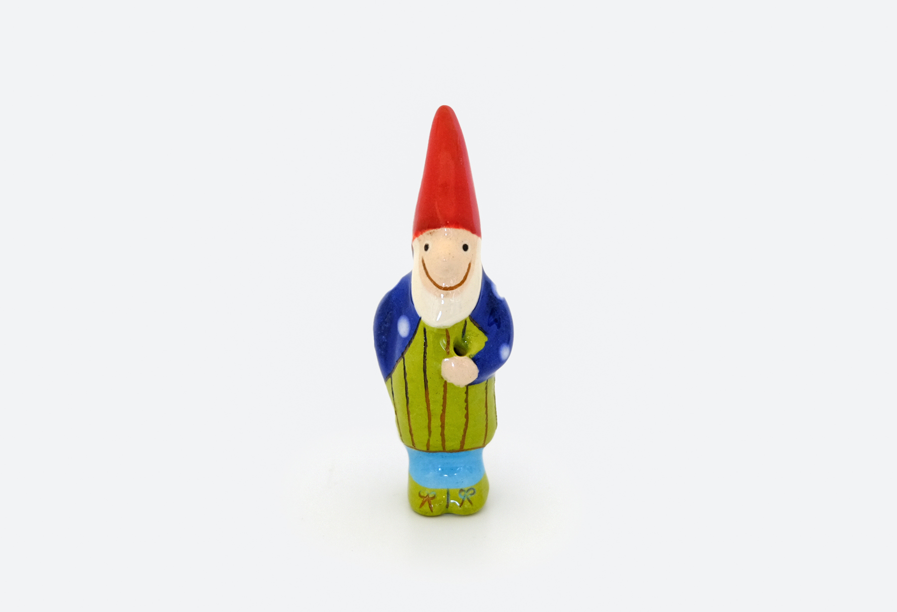 Die Gartenzwerge werden von Hand geformt und bemalt. Die Porzellanfiguren haben – zum Hineinstecken von Blümchen, Schirmchen und Ästchen – ein kleines Loch beim linken Arm. Die Farbauswahl bezieht sich auf die Oberteile. Mützen bleiben rot, die restlichen Kleidungsstücke können in der Farbe variieren.