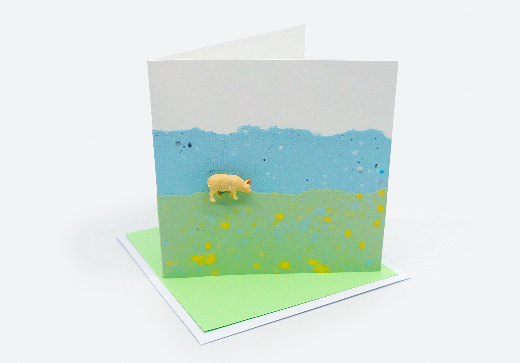 Tierisches Vergnügen – Die Kinder-Grusskarten mit wilden Tieren. Handgemacht in der Tagesstätte West, mit viel Sorgfalt und handgeschöpftem Papier. Die kleine Gummifigur kann leicht abgenommen werden. Die Farbe der Couverts und Einlageblätter kann variieren. Viele weitere Tiere finden Sie im Shop unter Kinder Karten.
