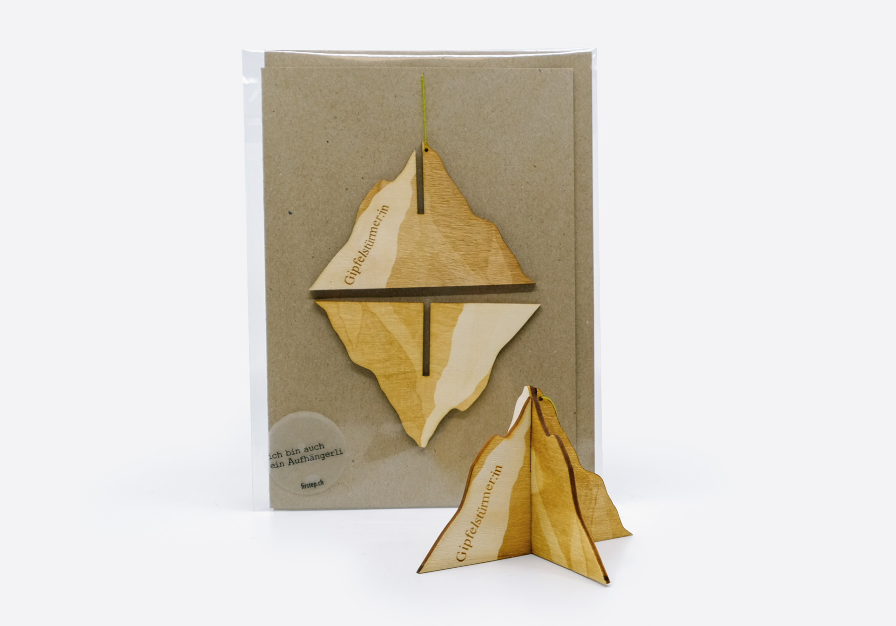 Der Berg ruft - die Gipfelstürmer*in. Eine coole Karte für Bergfreund*innen. Ein Wandergruss für Ihre Liebsten? Die Holzkarten werden im firstep gezeichnet und hergestellt.