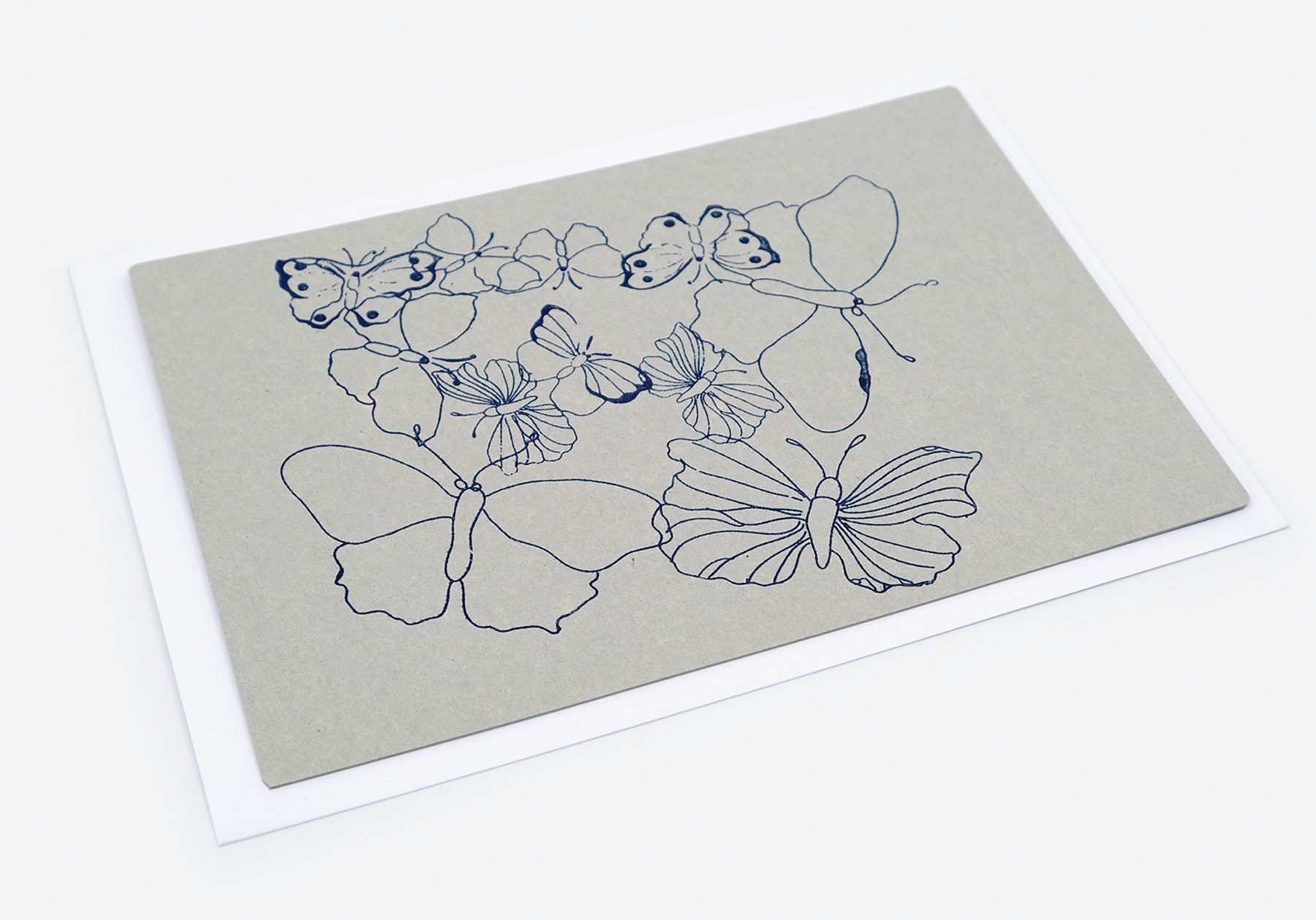 Handgemachte Siebdruck-Schmettelrings-Karten. Verschicken Sie einen frühlingshaften Gruss aus durchs Jahr hindurch.