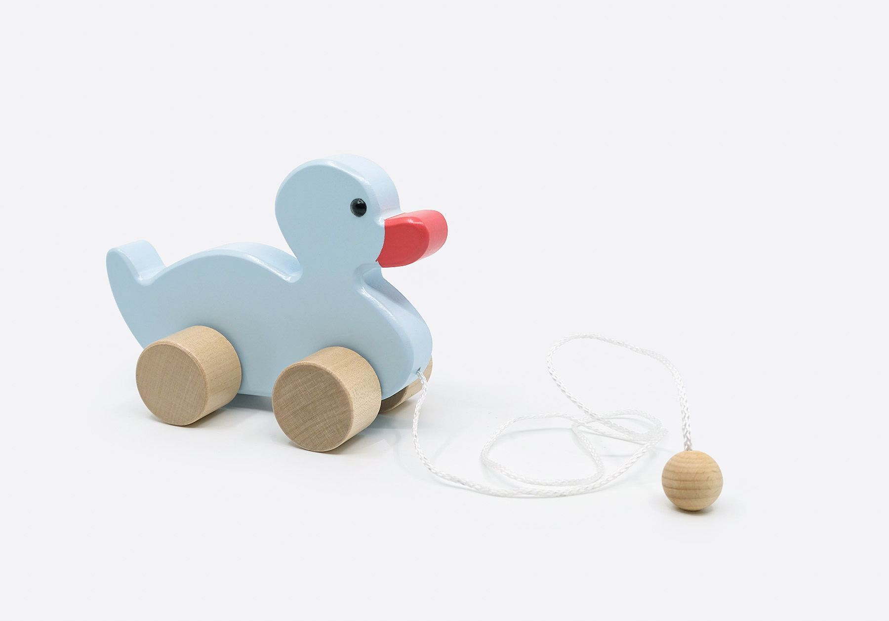Keck schwänzelt das Entlein mit auf und ab Bewegungen